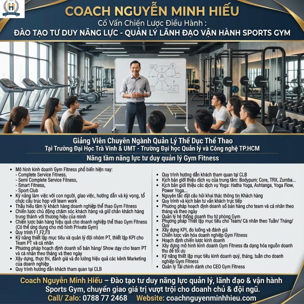 Coach Nguyễn Minh Hiếu – Đào tạo tư duy năng lực quản lý, lãnh đạo & vận hành Sports Gym, chuyển giao giá trị vượt trội cho doanh chủ & đội ngũ.