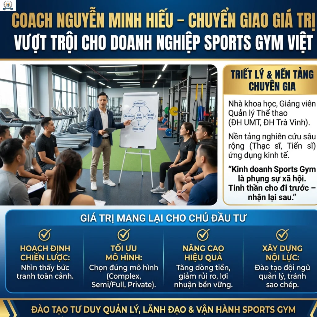 🏆 Coach Nguyễn Minh Hiếu – Đào tạo tư duy năng lực quản lý, lãnh đạo & vận hành Sports Gym, chuyển giao giá trị vượt trội cho doanh chủ & đội ngũ.
